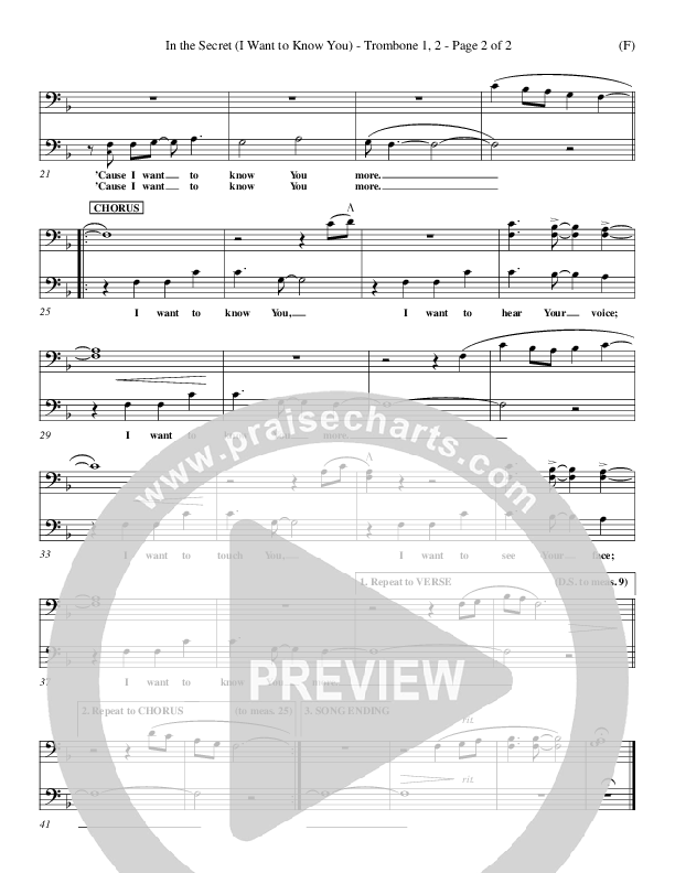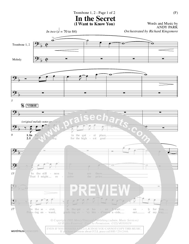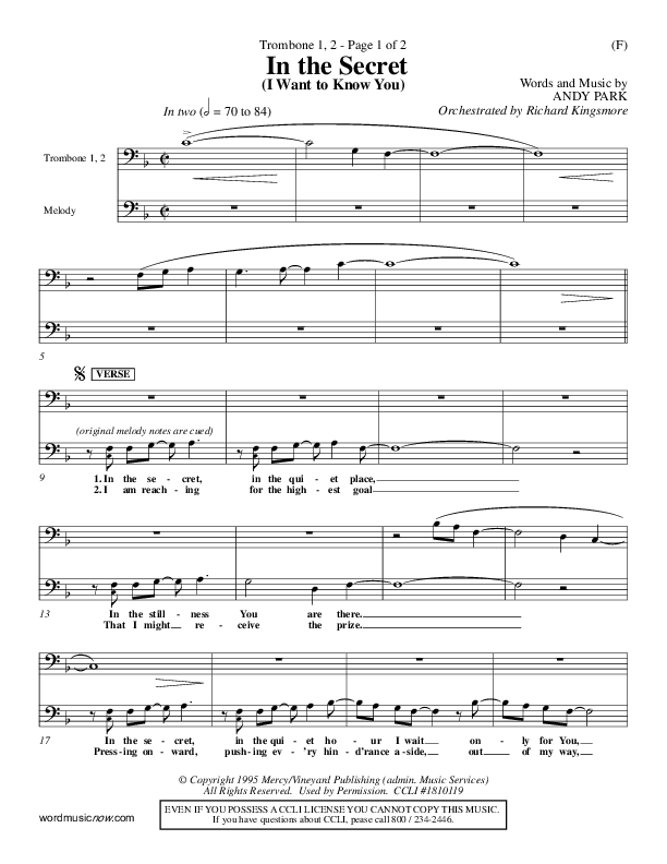 Download the Trombone 1,2 sheet music for In The Secret by Andy Park, from the album Word Music Now.