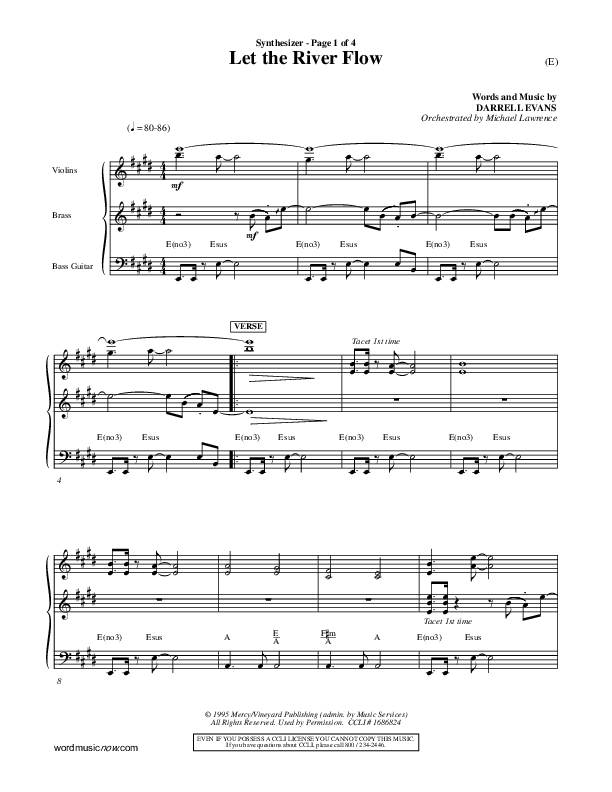 Download the Orchestration for Let The River Flow by Darrell Evans, from the album Word Music Now.