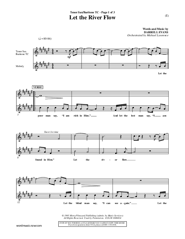 Download the Orchestration for Let The River Flow by Darrell Evans, from the album Word Music Now.
