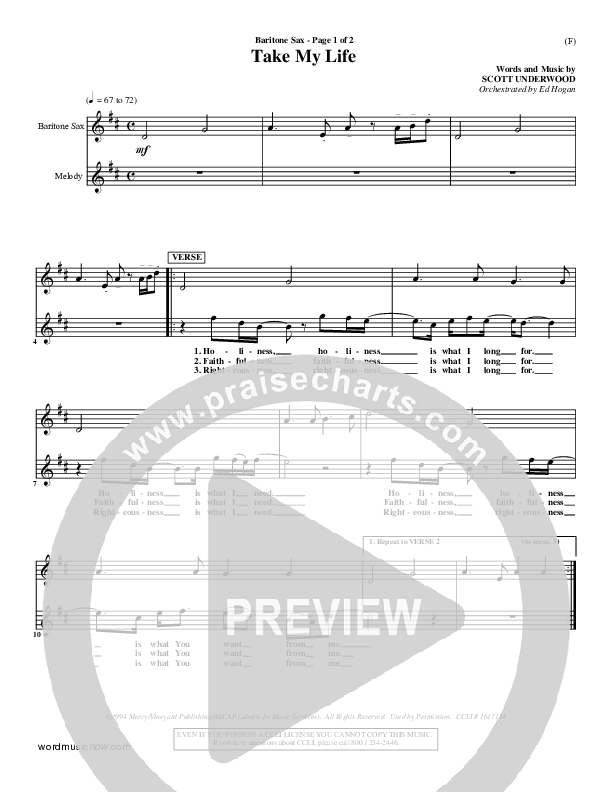 Download the Bari Sax sheet music for Take My Life by Scott Underwood, from the album Word Music Now.