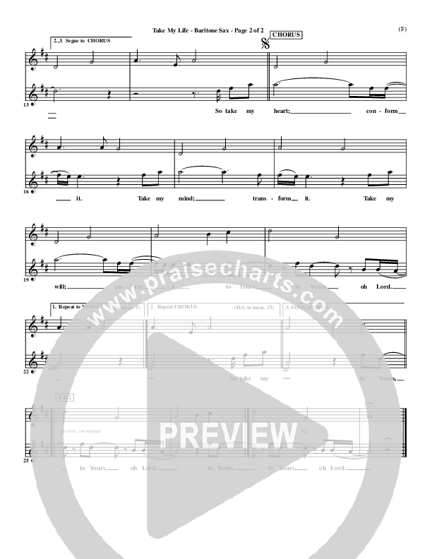 Take My Life Bari Sax Sheet Music PDF (Scott Underwood)