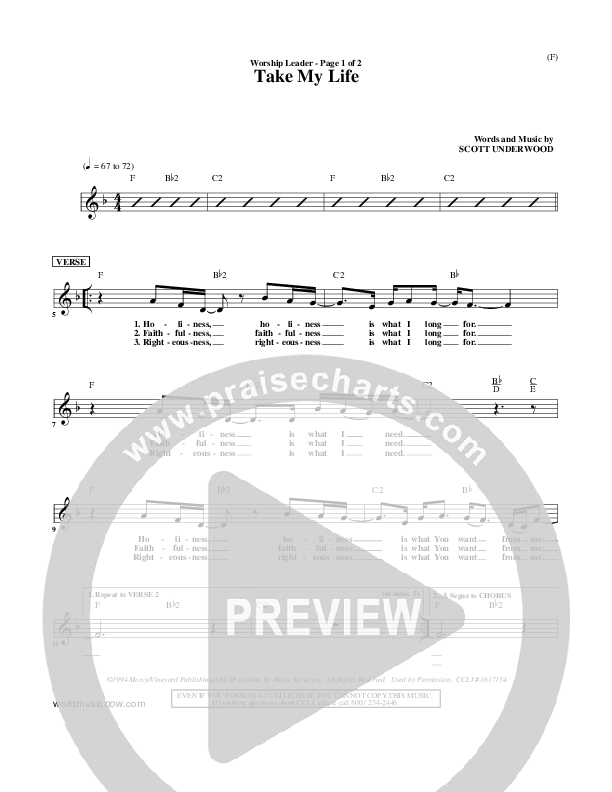Download the Orchestration for Take My Life by Scott Underwood, from the album Word Music Now.