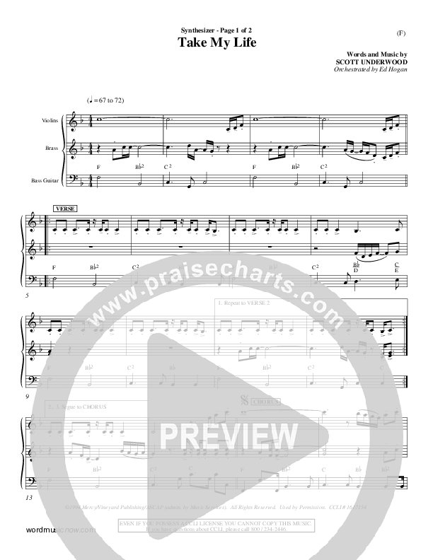 Download the Orchestration for Take My Life by Scott Underwood, from the album Word Music Now.