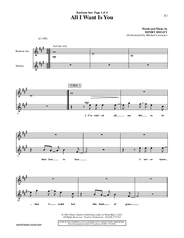 Download the Bari Sax sheet music for All I Want Is You by Henry Seeley, from the album Word Music Now.