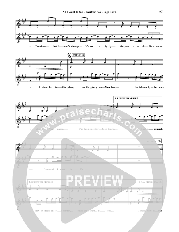 All I Want Is You Bari Sax Sheet Music PDF (Henry Seeley)
