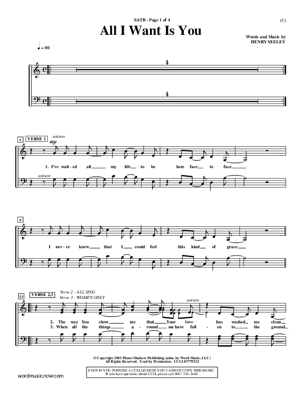 Download the Choir Sheet for All I Want Is You by Henry Seeley, from the album Word Music Now.