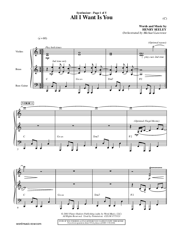Download the Orchestration for All I Want Is You by Henry Seeley, from the album Word Music Now.