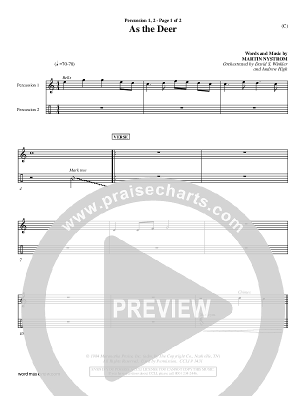 Download the Orchestration for As The Deer by Martin Nystrom, from the album Word Music Now. This song was arranged by David S. Winkler / Andrew High in the key of C, Db.