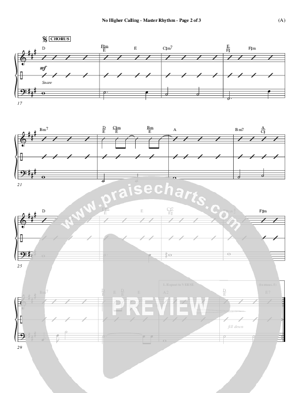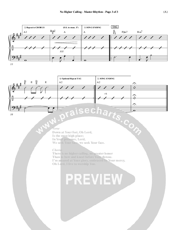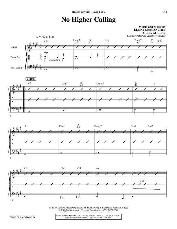 Download the Rhythm Chart for No Higher Calling by Lenny LeBlanc, from the album Word Music Now.