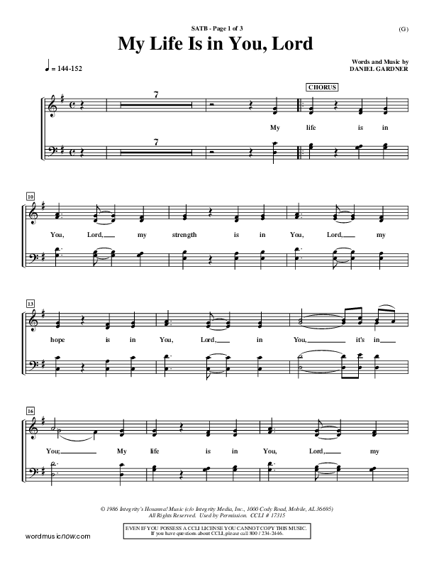 Download the Choir Sheet for My Life Is In You by Daniel Gardner, from the album Word Music Now.