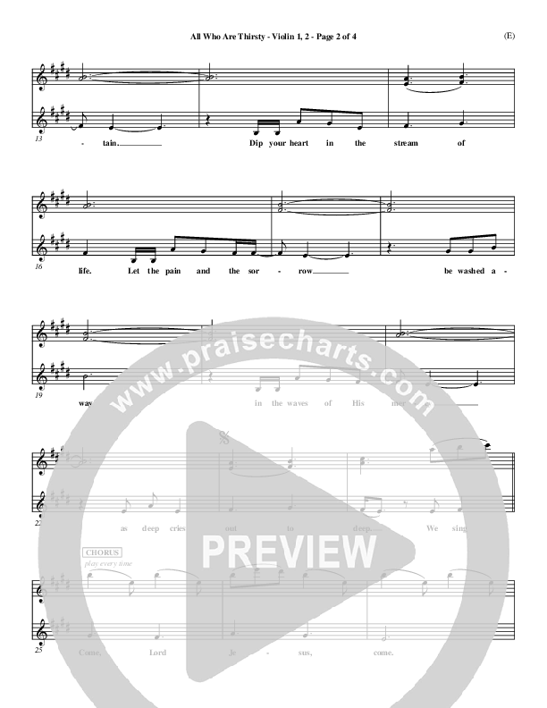 Download the Violin sheet music for All Who Are Thirsty by Brenton Brown, from the album Word Music Now. This song was arranged by Dave Williamson in the key of E.