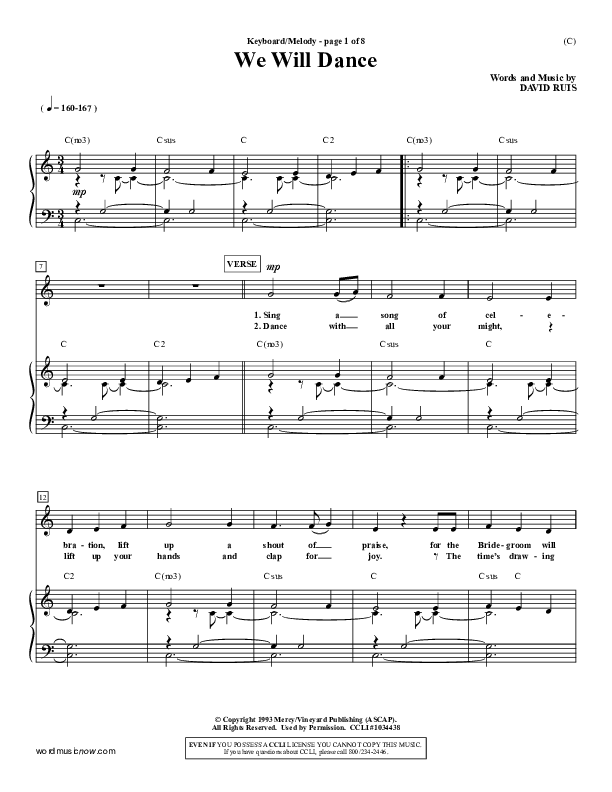 Download the sheet music for We Will Dance by David Ruis, from the album Word Music Now.