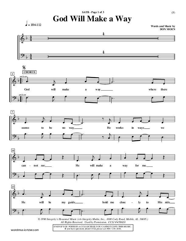 Download the Choir Sheet for God Will Make A Way by Don Moen, from the album Word Music Now.