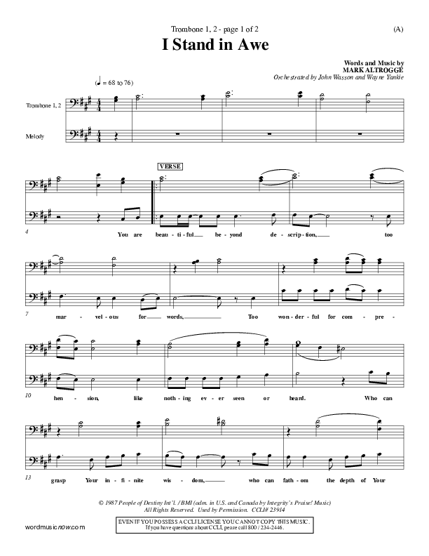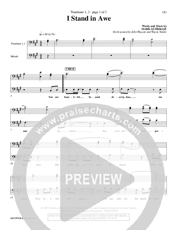 Download the Trombone 1,2 sheet music for I Stand In Awe by Mark Altrogge, from the album Word Music Now.