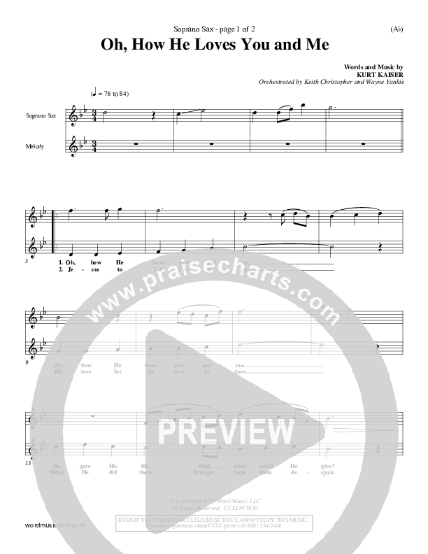 Download the Orchestration for Oh How He Loves You And Me by Kurt Kaiser, from the album Word Music Now. This song was arranged by Keith Christopher / Wayne Yankie in the key of Ab, G.