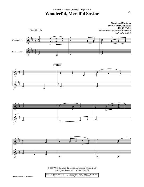 Wonderful Merciful Savior Clarinet Sheet Music PDF (Eric Wyse)