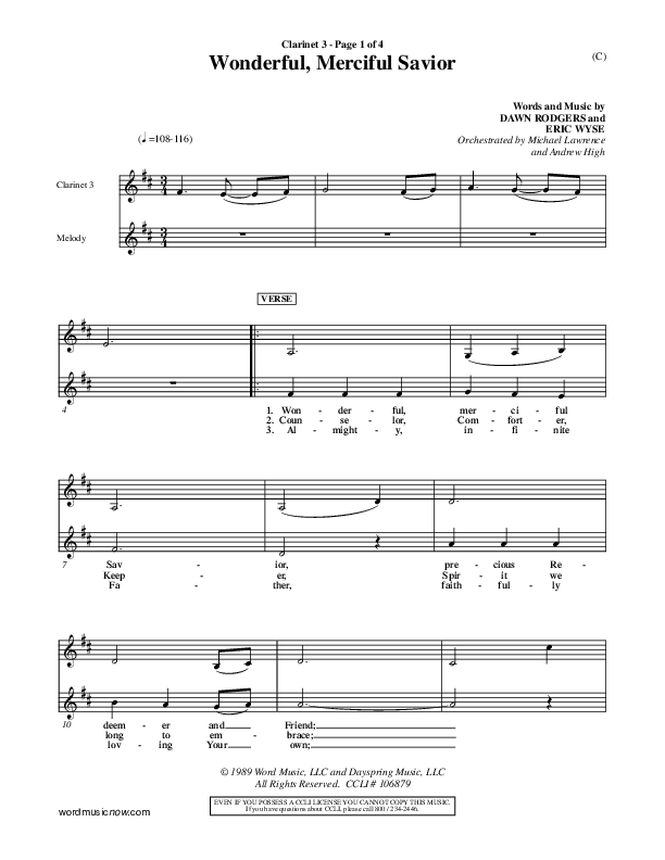 Download the Orchestration for Wonderful Merciful Savior by Eric Wyse, from the album Word Music Now. This song was arranged by Word Music in the key of C, Db.
