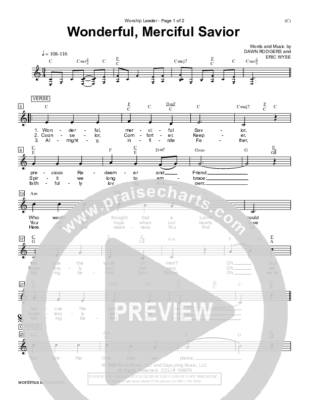 Download the Orchestration for Wonderful Merciful Savior by Eric Wyse, from the album Word Music Now. This song was arranged by Word Music in the key of C, Db.