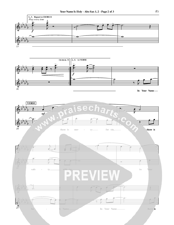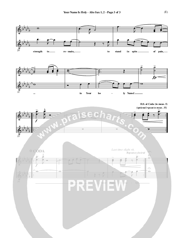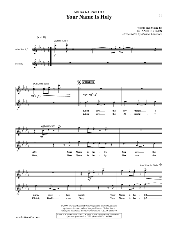 Your Name Is Holy Alto Sax Sheet Music PDF (Brian Doerksen)