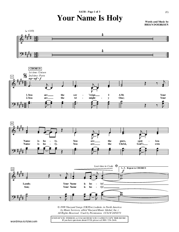 Your Name Is Holy Sheet Music PDF (Brian Doerksen)