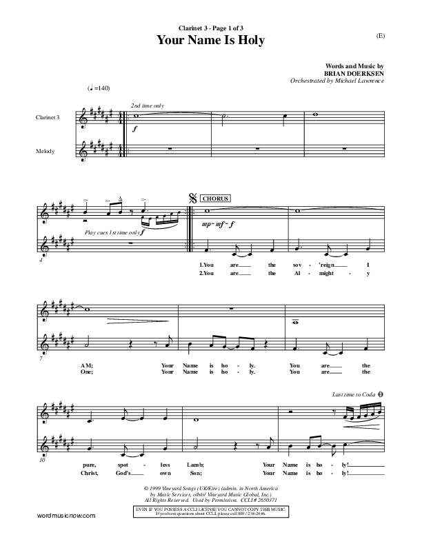 Download the Orchestration for Your Name Is Holy by Brian Doerksen, from the album Word Music Now.