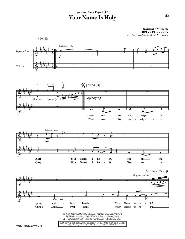 Download the Orchestration for Your Name Is Holy by Brian Doerksen, from the album Word Music Now.