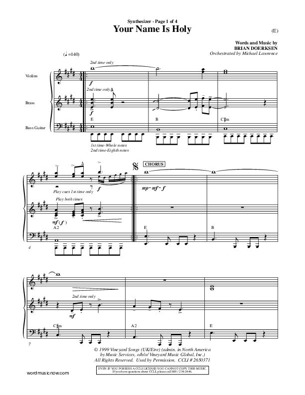 Download the Orchestration for Your Name Is Holy by Brian Doerksen, from the album Word Music Now.