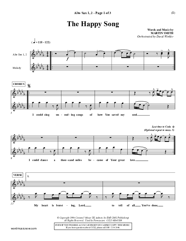 Download the Alto Sax 1,2 sheet music for The Happy Song by Delirious, from the album Word Music Now.