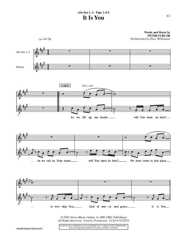 Download the Alto Sax 1,2 sheet music for It Is You by Newsboys, from the album Word Music Now.