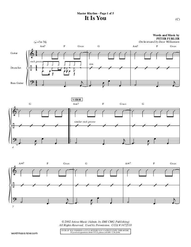 Download the Rhythm Chart for It Is You by Newsboys, from the album Word Music Now.