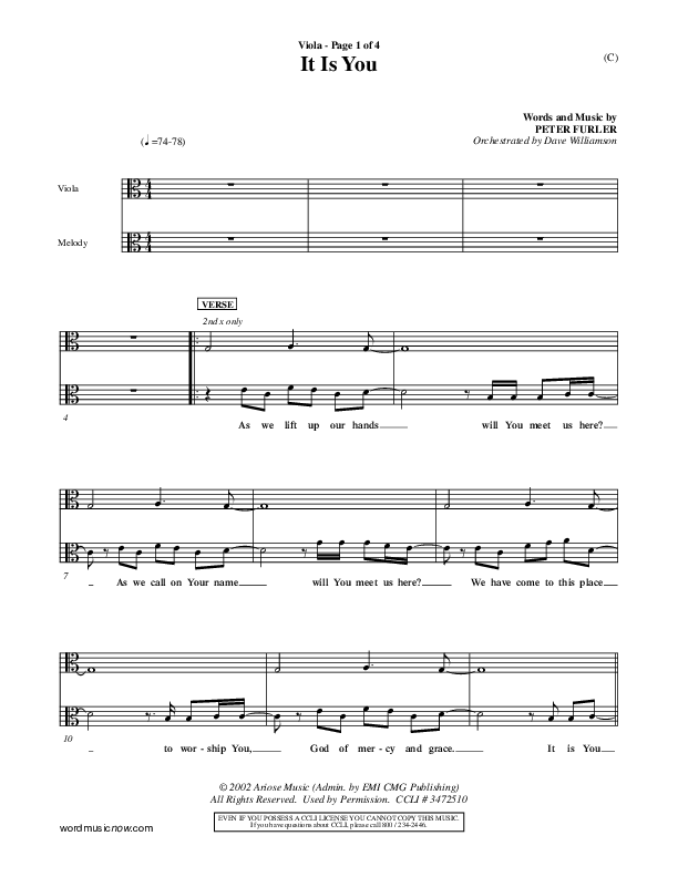 Download the Viola sheet music for It Is You by Newsboys, from the album Word Music Now.