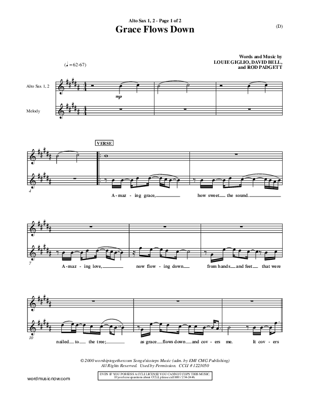 Download the Alto Sax 1,2 sheet music for Grace Flows Down, from the album Word Music Now.