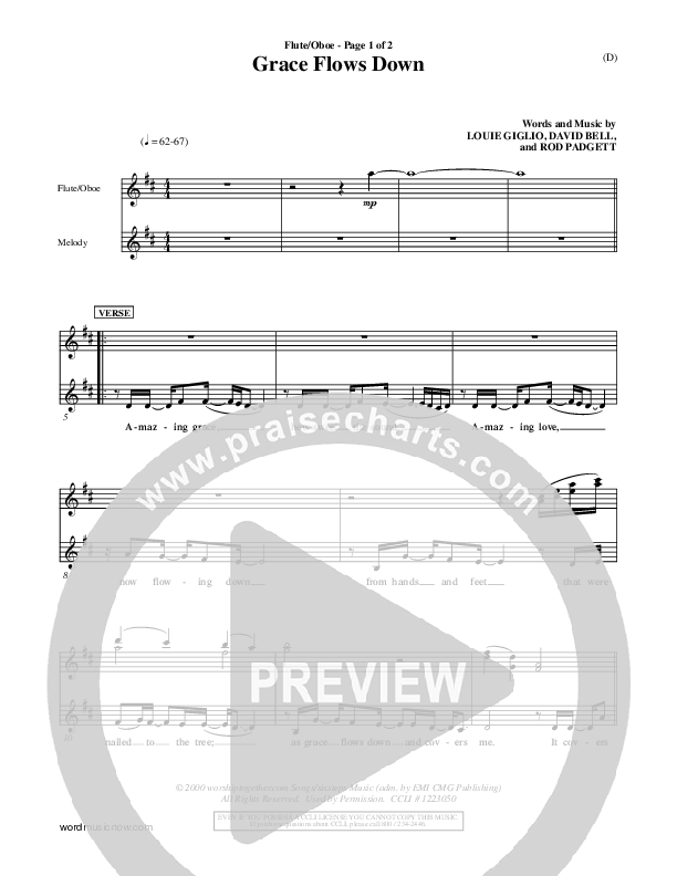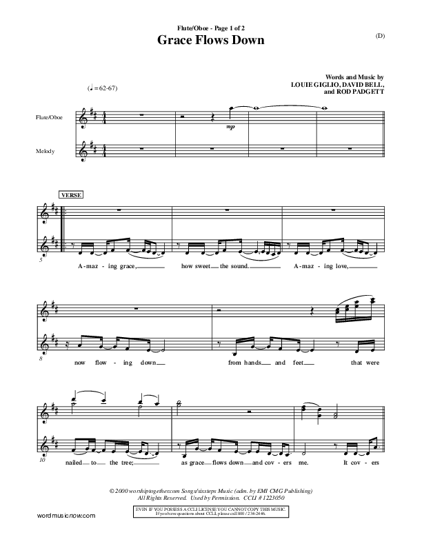 Download the Flute/Oboe sheet music for Grace Flows Down, from the album Word Music Now.