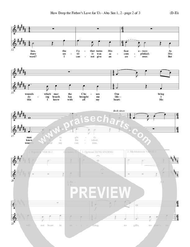 Download the Alto Sax 1,2 sheet music for How Deep The Father's Love For Us by Stuart Townend, from the album Word Music Now. This song was arranged by Dave Williamson in the key of D, E.