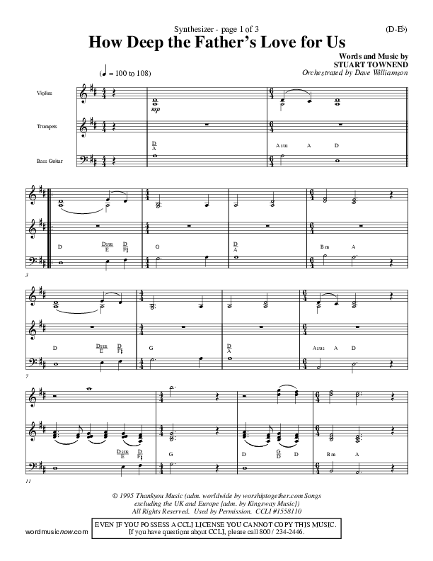 Download the Orchestration for How Deep The Father's Love For Us by Stuart Townend, from the album Word Music Now. This song was arranged by Dave Williamson in the key of D, E.