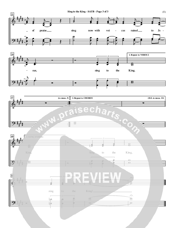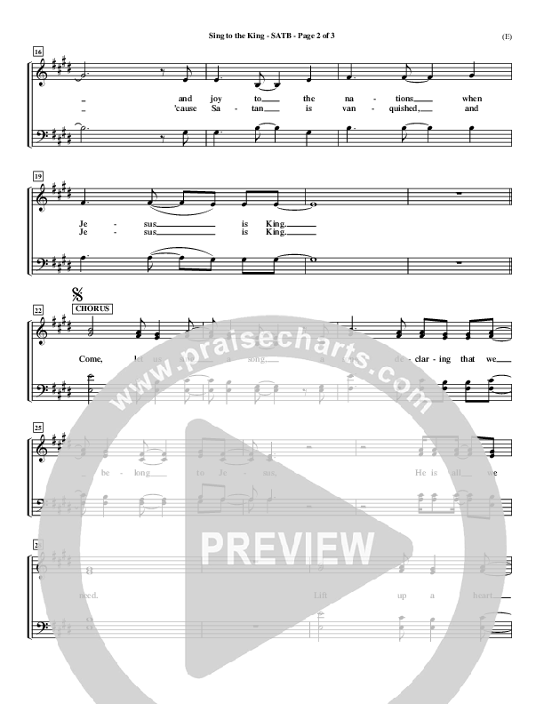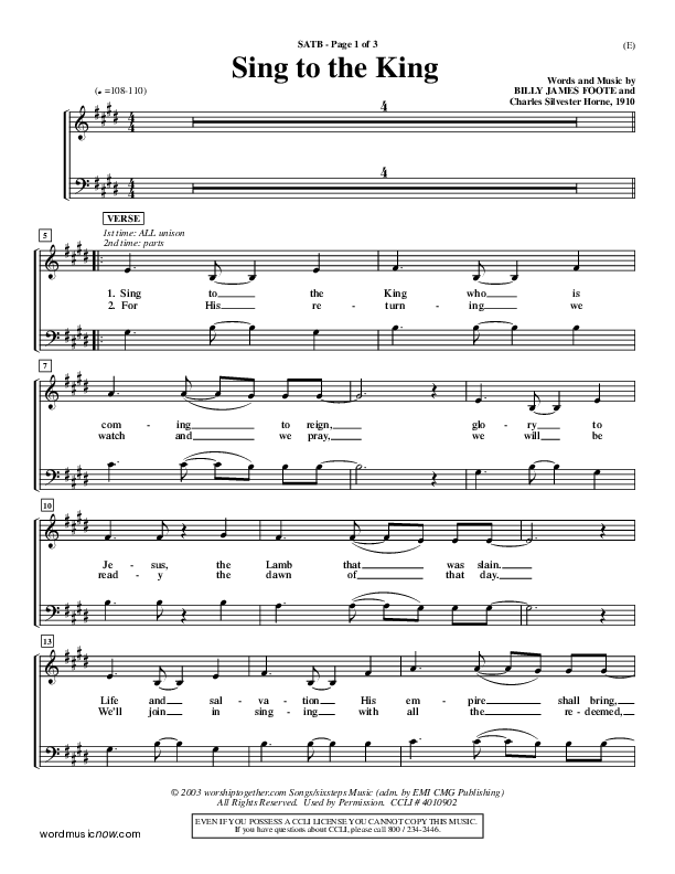 Download the Choir Sheet for Sing To The King by Billy Foote, from the album Word Music Now. This song was arranged by Dave Williamson in the key of E, F.