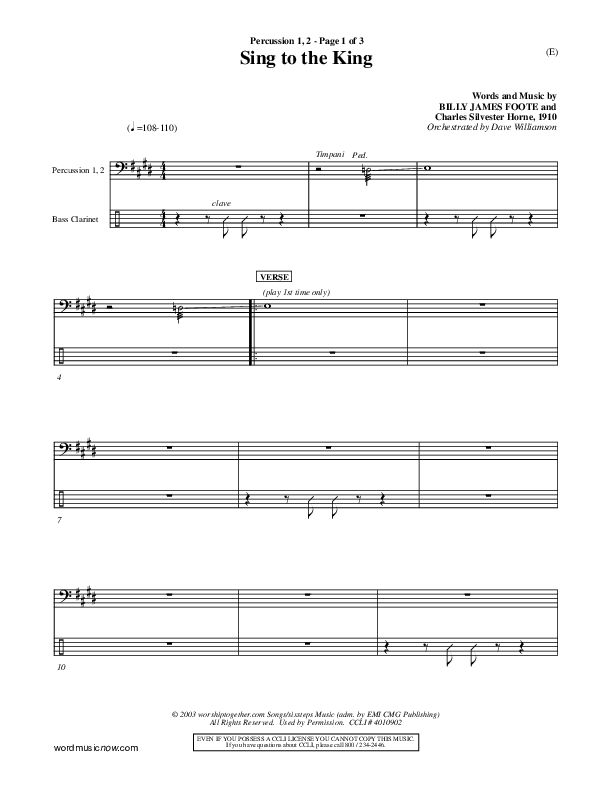 Download the Orchestration for Sing To The King by Billy Foote, from the album Word Music Now. This song was arranged by Dave Williamson in the key of E, F.