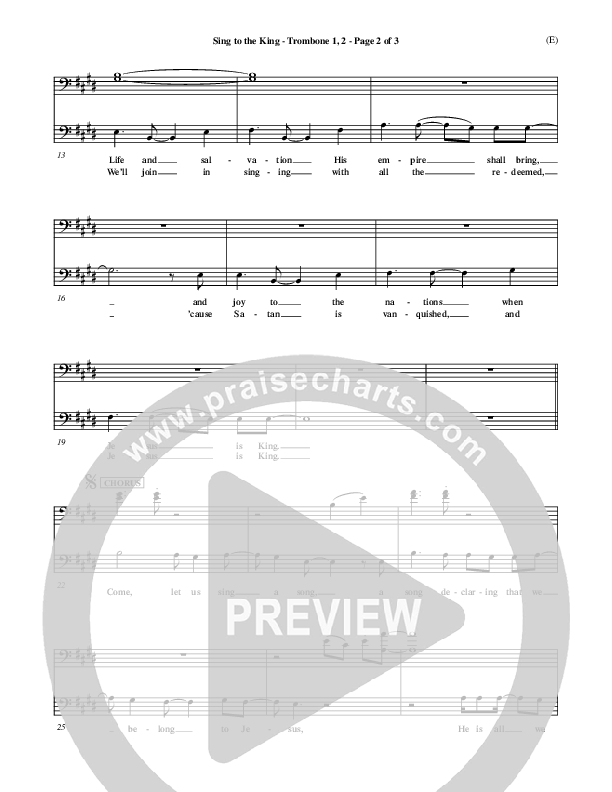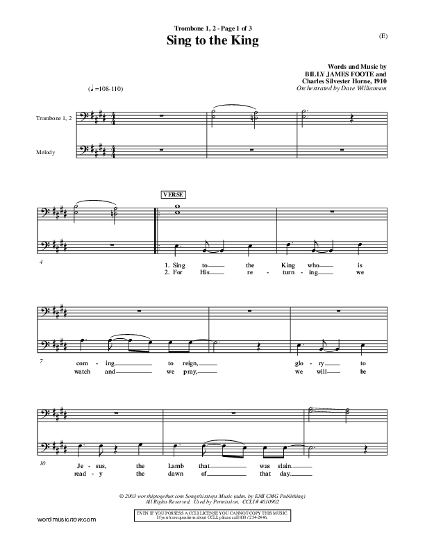 Download the Trombone 1,2 sheet music for Sing To The King by Billy Foote, from the album Word Music Now. This song was arranged by Dave Williamson in the key of E, F.