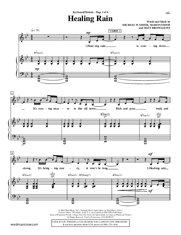 Download the sheet music for Healing Rain by Michael W. Smith, from the album Word Music Now.