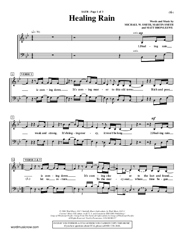 Download the Choir Sheet for Healing Rain by Michael W. Smith, from the album Word Music Now.