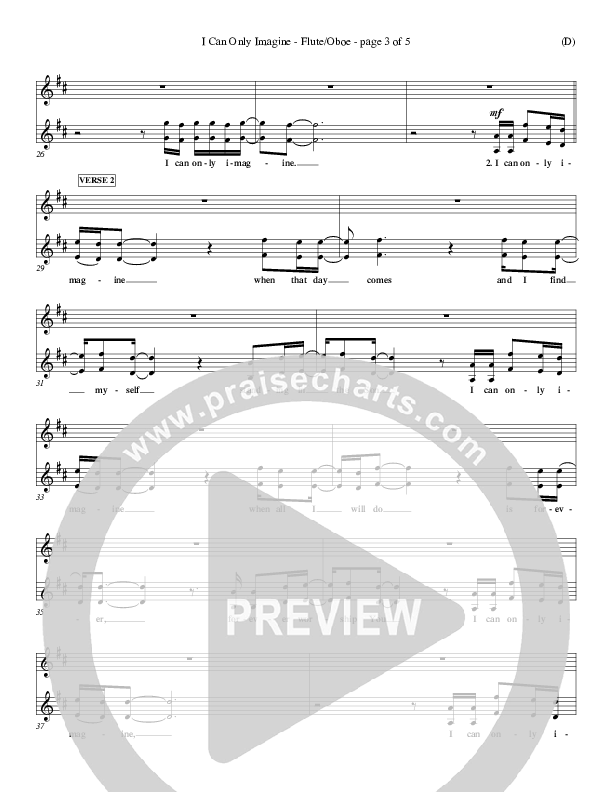 I Can Only Imagine Flute/Oboe Sheet Music PDF (MercyMe)