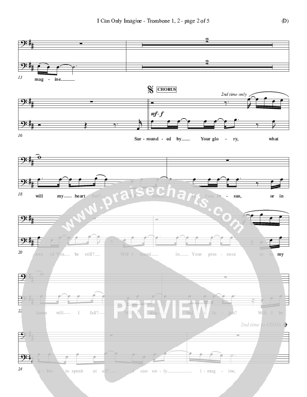 I Can Only Imagine Trombone Sheet Music PDF (MercyMe)