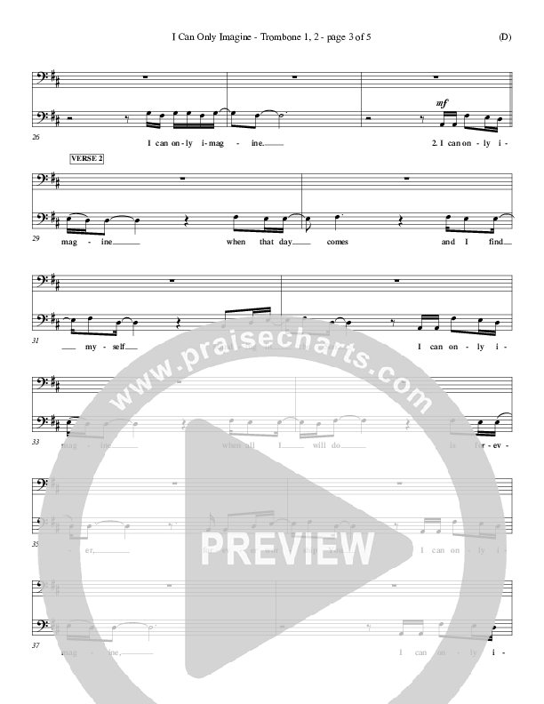 Download the Trombone 1,2 sheet music for I Can Only Imagine by MercyMe, from the album Word Music Now. This song was arranged by Word Music in the key of D, Eb.