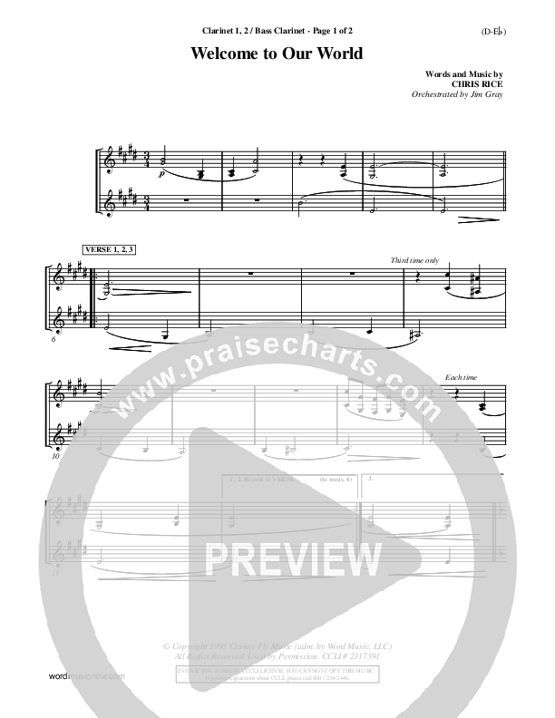Download the Orchestration for Welcome To Our World by Chris Rice, from the album Word Music Now. This song was arranged by Jim Gray in the key of D, E.