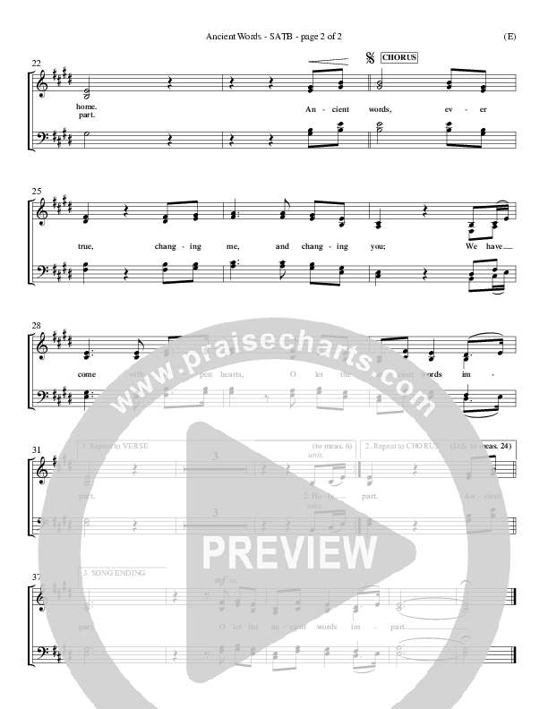 Download the Choir Sheet for Ancient Words by Lynn DeShazo, from the album Word Music Now. This song was arranged by Dave Williamson in the key of E, F.