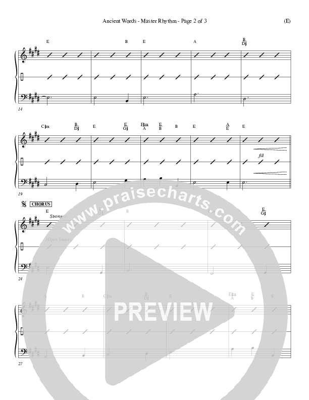 Download the Rhythm Chart for Ancient Words by Lynn DeShazo, from the album Word Music Now. This song was arranged by Dave Williamson in the key of E, F.