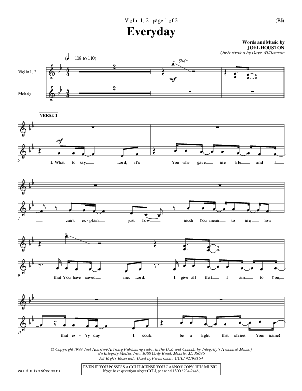 Download the Violin sheet music for Everyday by Joel Houston, from the album Word Music Now.