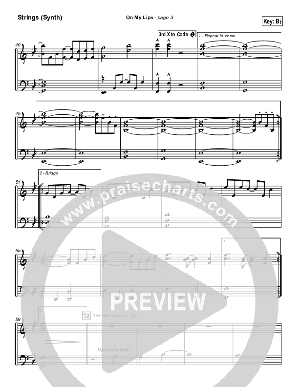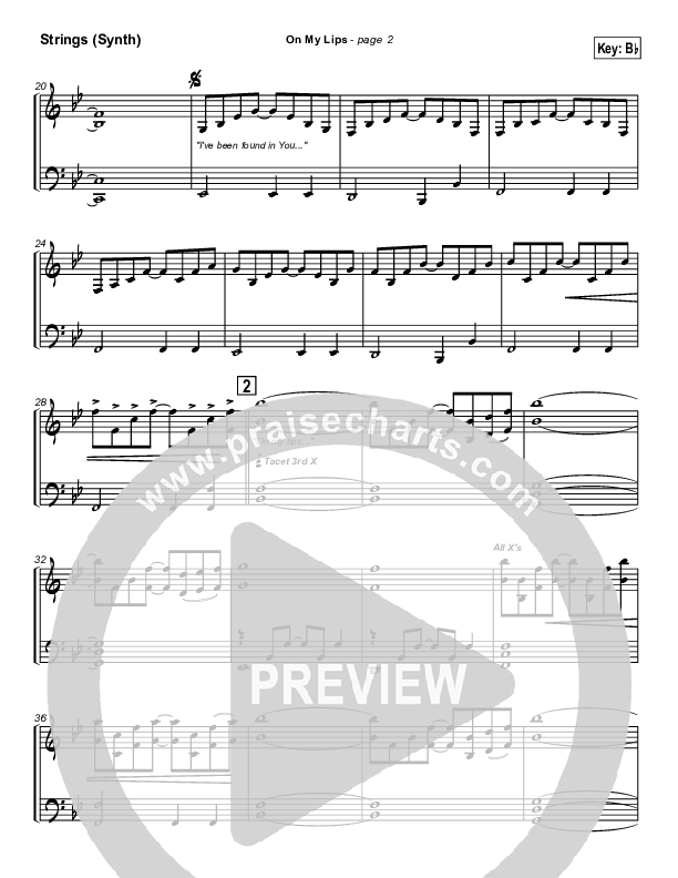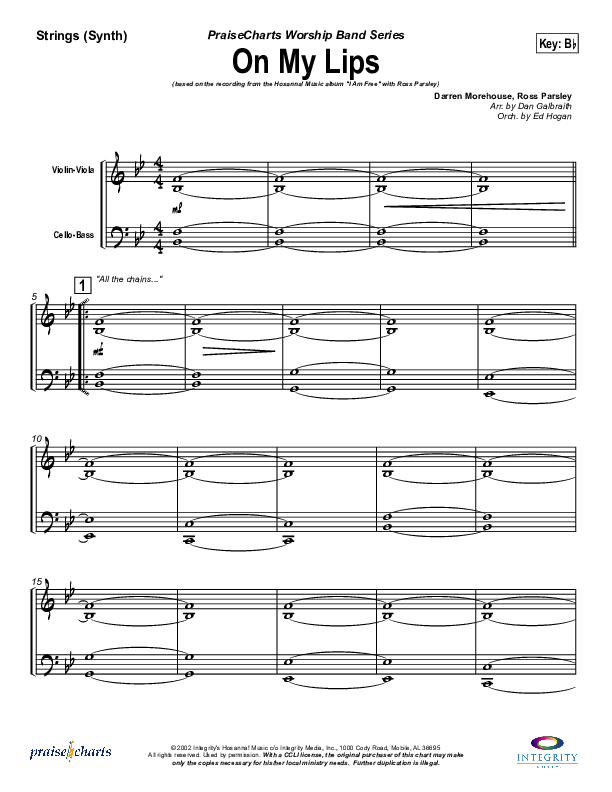 Download the Orchestration for On My Lips by New Life Worship, from the album Ross Parsley: I Am Free. This song was arranged by Ed Hogan in the key of C.