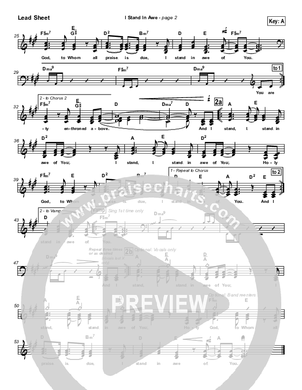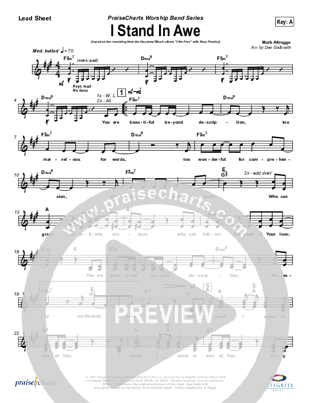 Download the sheet music for I Stand In Awe by New Life Worship, from the album Ross Parsley: I Am Free. This song was arranged by Daniel Galbraith in the key of A, Bb.