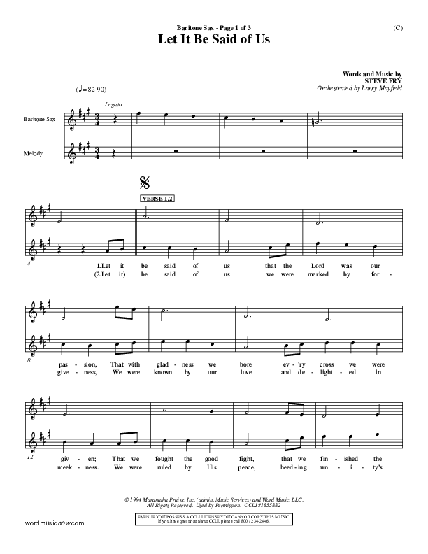 Download the Bari Sax sheet music for Let It Be Said Of Us by Steve Fry, from the album Word Music Now.